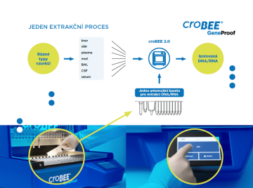 Izolátor nukleových kyselin croBEE 2.0 je kompaktní, plně automatický systém pro rychlou a účinnou simultánní izolaci nukleových kyselin ze širokého spektra biologických materiálů.