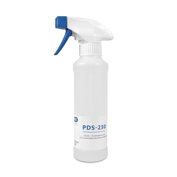PDS-250 je „ready-to-use“ dekontaminační roztok, určený pro eliminaci DNA/RNA z povrchů před přípravou PCR reakce. DNA/RNA je odstraněna během několika sekund po použití. Roztok obsahuje nealkalické a nekarcinogenní činidlo. Kromě dekontaminace pracovní plochy lze PDS-250 použít na povrchy všech typů laboratorních přístrojů.