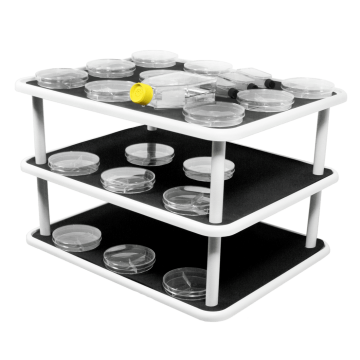 Soustava čtyř plochých platforem s protiskluzovou silikonovou podložkou nad sebou. Vhodná pro různé typy nízkoprofilových nádob. Platforma je kompatibilní s třepačkou PSU-20i.
