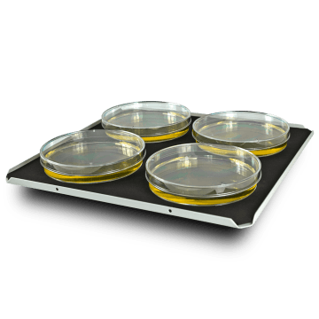 Plochá platforma s protiskluzovou silikonovou podložkou pro Petriho misky, kultivační nádobky, aglutinace. Platforma je kompatibilní s třepačkami PSU-10i, CPS-20 a ES-20.