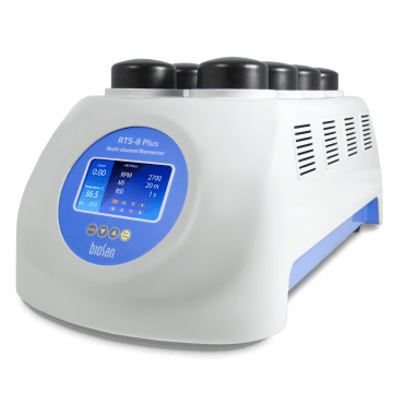 Multikanálový bioreaktor RTS-8 Plus slouží k mikrobiální kultivaci s automatickým sledováním růstové křivky. Využívá patentovanou technologii Reverse-Spin®, která využívá inovativní typ míchání, kdy 50 ml zkumavka s buněčnou suspenzí rotuje kolem své vlastní osy se změnou směru rotačního pohybu. To vede k vysoce účinnému míchání a okysličení pro aerobní kultivaci. Díky optickému systému s vlnovou délkou blízkou infračervenému spektru je možné registrovat kinetiku růstu buněk neinvazivně v reálném čase. Pomocí fluorescenčního a luminiscenčního systému je pak možné registrovat kinetiku pH a O2 vzorku. Pro měření pH a O2 jsou uvnitř zkumavek použity inovnativní jednorázové senzory.