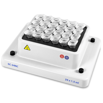 Blok pro 24 x 1,5 ml mikrozkumavky. Blok je kompatibilní s temperovanými třepačkami TS-100C a TS-100C Smart.