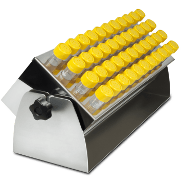 Stojan pro 44 x 15 ml zkumavky s nastavitelným úhlem. Kompatibilní s univerzální platformou UP-168.