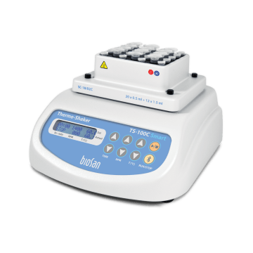 Temperovaná třepačka TS-100C poskytuje intenzivní míchání a kontrolu teploty vzorkůTemperovaná třepačka TS-100C Smart poskytuje intenzivní míchání a kontrolu teploty vzorků v mikrozkumavkách nebo PCR destičce. Tento model se liší od TS-100 možností chlazení vzorků až na +4 °C a ovládání až 7 jednotek z PC pomocí technologie Bluetooth. TS-100C Smart implementuje tři zařízení v jednom: